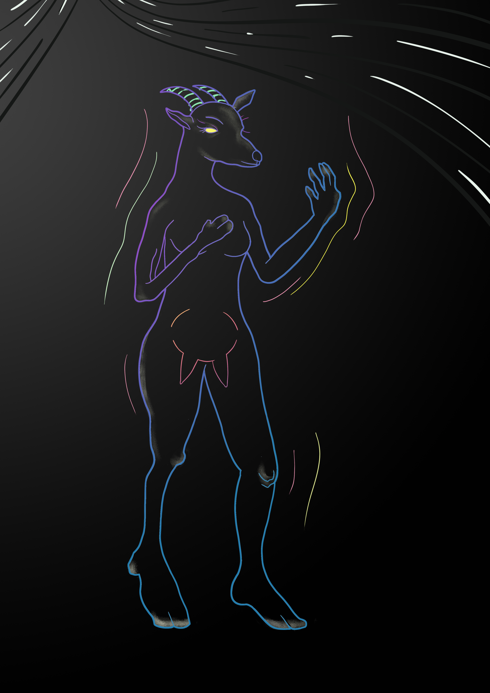 Время шло, наша героиня после прогулок на речку всё больше и больше видоизменялась. У нее выпали рога и отросли новые, похожие на острые штыковые ножи, зрение приобрело всё большую остроту. Я научилась видеть в темноте. Стали пропадать охота к еде и увеличиваться любовь к здешней речке. Именно речка делает козу более выносливой, сильной. У нашей героини появился длинный язык, высовывающийся, словно для ловли мух...